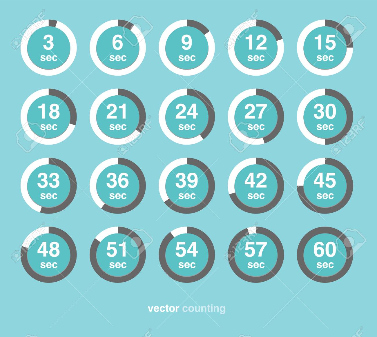 Vettoriale Raccolta Di Icone Vettoriali Con Orologio Conta Su Sfondo Verde Timespan E Di 3 Secondi O Minuti Image