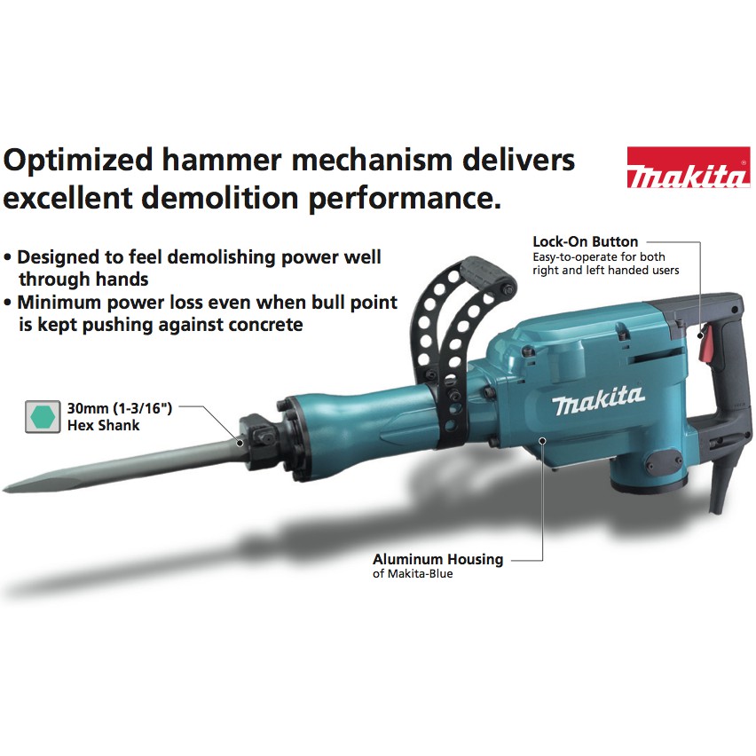 Makita HM1307CB Demolition jack Hammer 35lbs with 4 diffrent chisels. Find demolition hammers at Lowe's today Free Shipping On Orders $45 Shop demolition hammers and a variety of tools products online at Lowescom. The Makita lb Demolition Hammer accepts The Makita lb Demolition Hammer accepts SDSMAX bits and provides a hard hitting 1 lbs of impact energy The hammer has a soft start feature that suppresses startup reaction for more control and better accuracy Equipped with variable speed function, you can match the speed to your application.