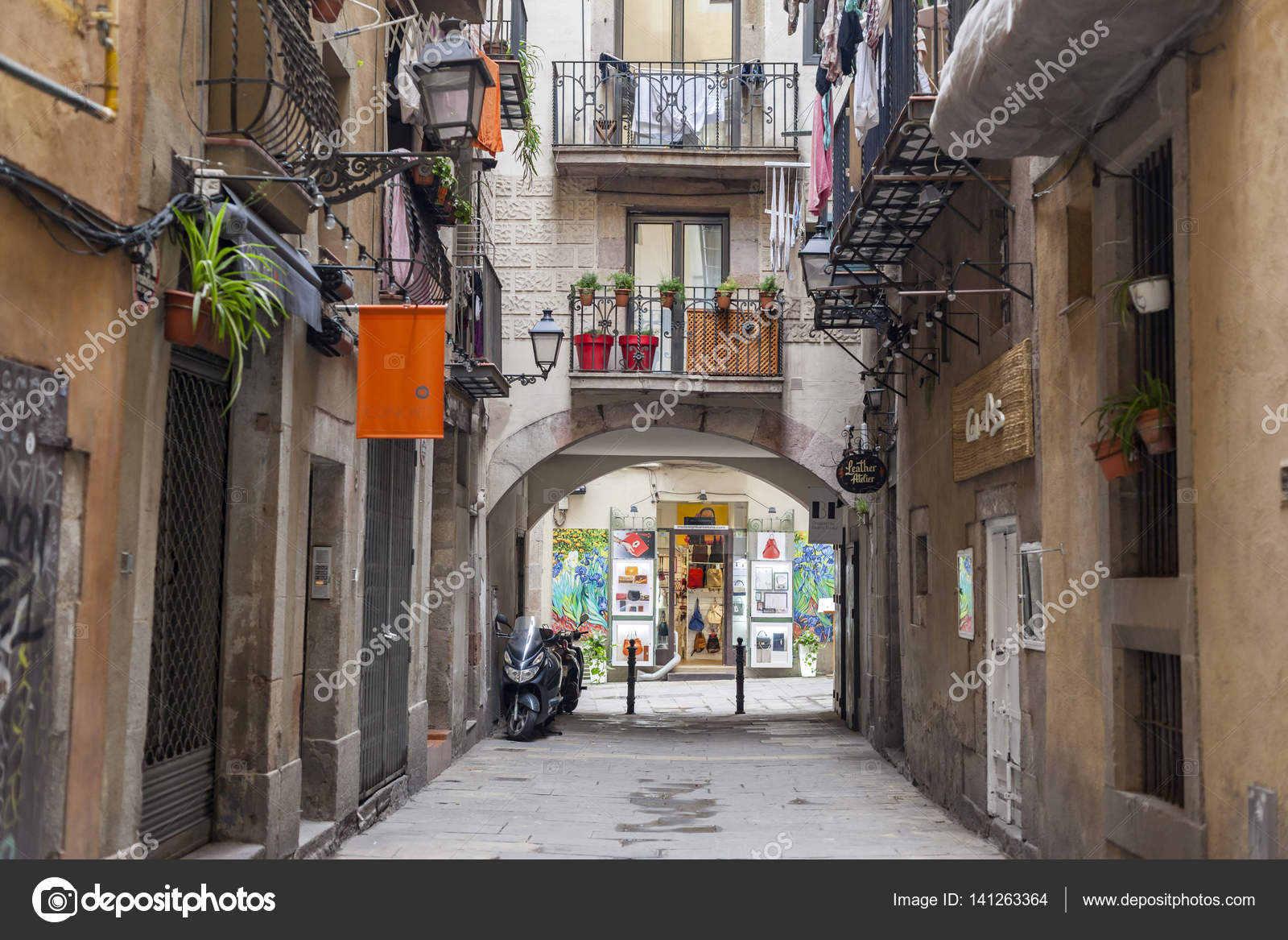 Narrow Street In El Born Barcelona Spain Stock Photo Alamy