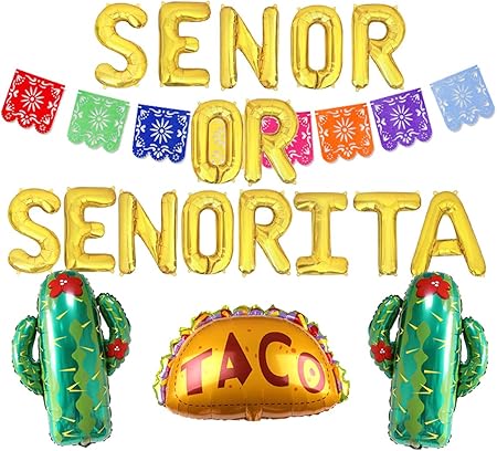 Jollyboom Fiesta Senor O Senorita Genere Rivela Decorazioni Fiesta Messicana Picado Banner Palloncini Taco Cactus Amazon It Casa E Cucina