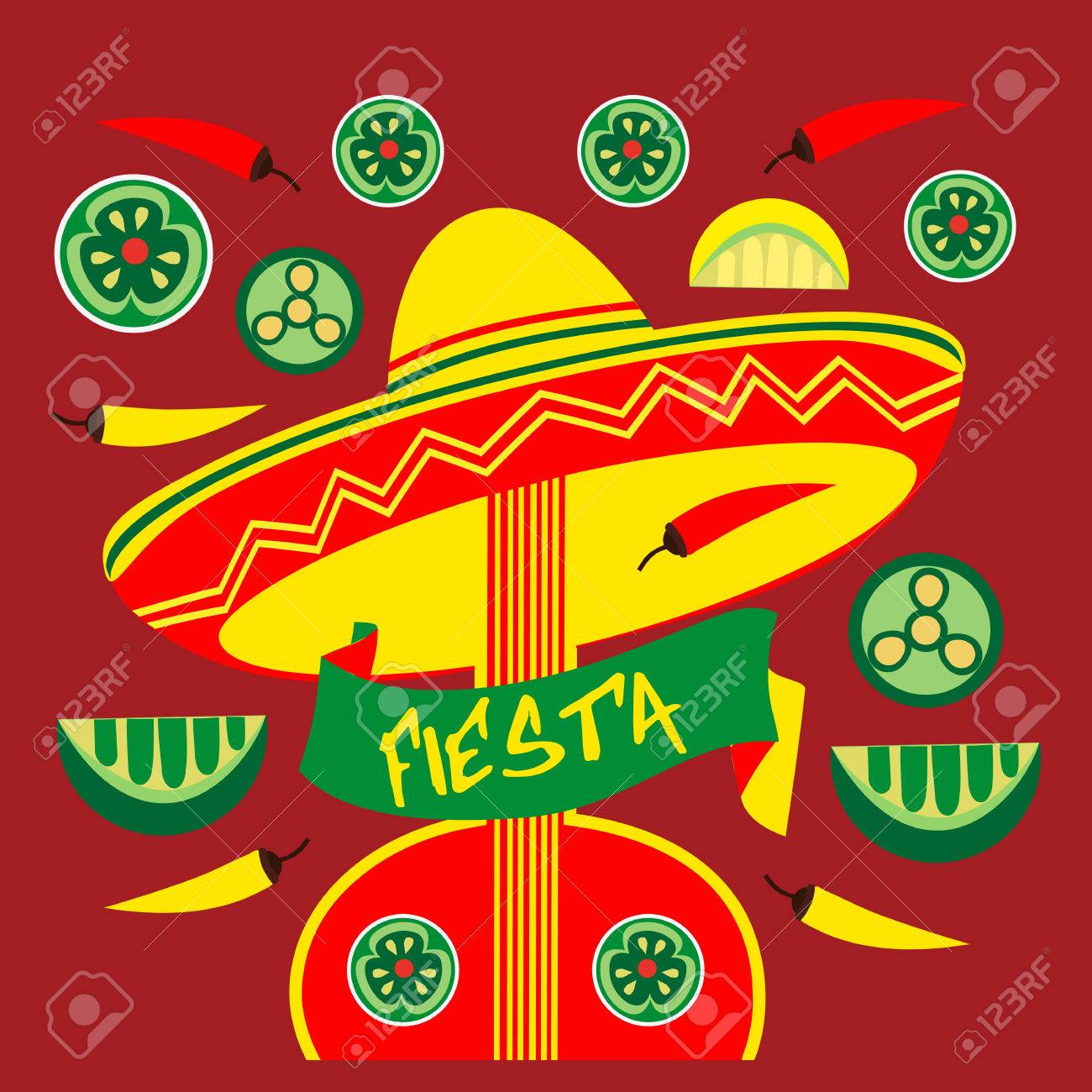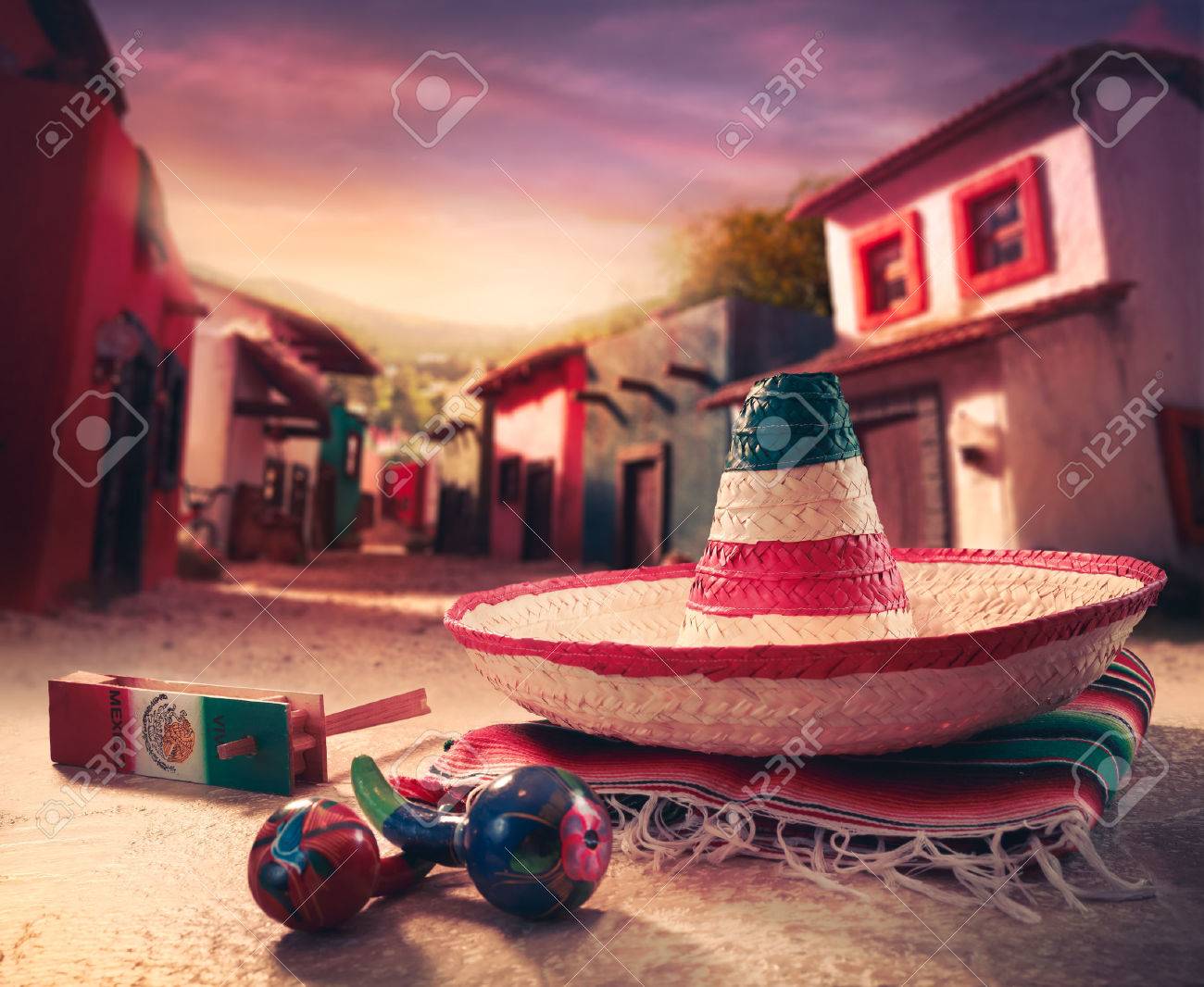 Immagini Stock Sfondo Fiesta Messicana Con Un Cappello Sombrero E Maracas In Una Citta Messicana Image