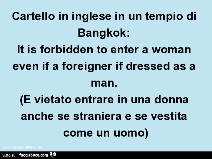 Cartello In Inglese In Un Tempio Di Bangkok It Is Forbidden To Enter A Woman Even Facciabuco Com