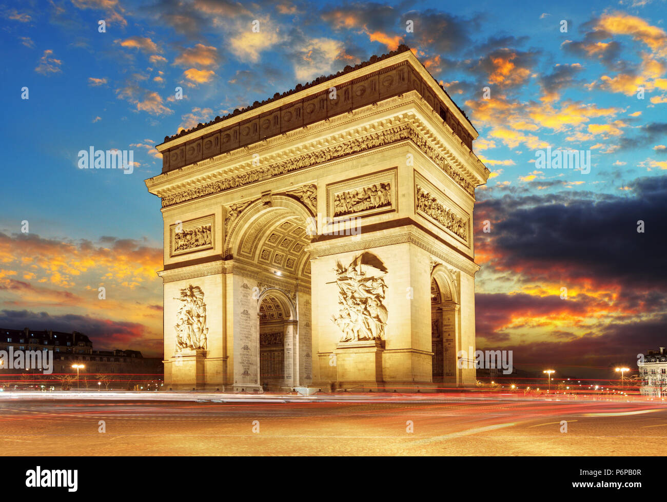 Arc De Triomphe A Parigi Arco Di Trionfo Del Tramonto In Francia Foto Stock Alamy