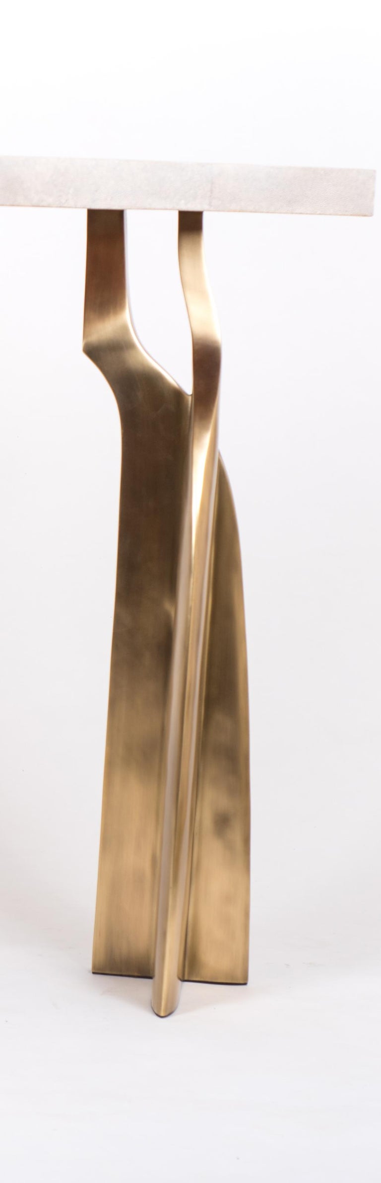 Chital 2 Top Side Table In Cream Shagreen And Bronze Patina Brass By Kifu Paris For Sale At 1stdibs