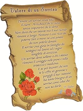 Libreriadelsanto It Quadretto A Forma Di Pergamena Con Piedino Da Appoggio Valore Di Un Sorriso 10 X 7 Amazon It Casa E Cucina