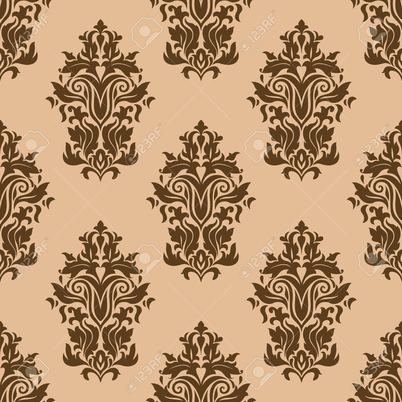 Vettoriale Floreali Retro Marrone Scuro Modello Senza Soluzione Di Continuita Su Sfondo Marrone Chiaro Di Colore Per Fondale Sfondi E Design Tessile Image