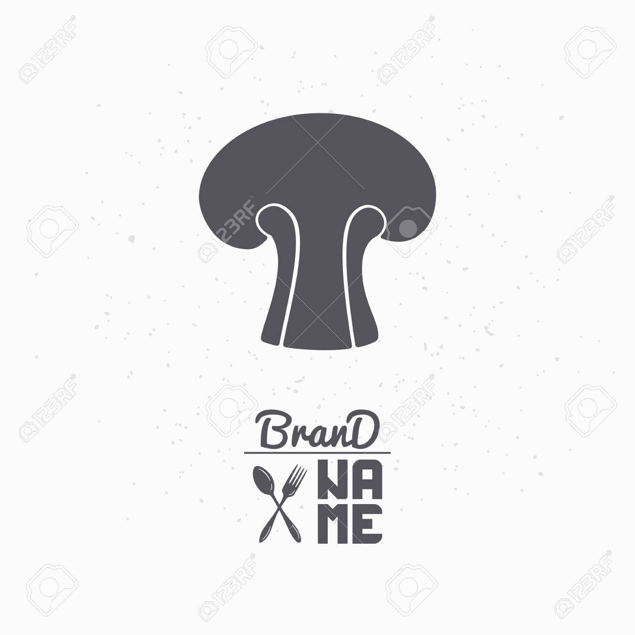 Hand Drawn Silhouette Of Mushroom Food Market Logo Template Royalty Free Cliparts Vectors And Stock Illustration Image