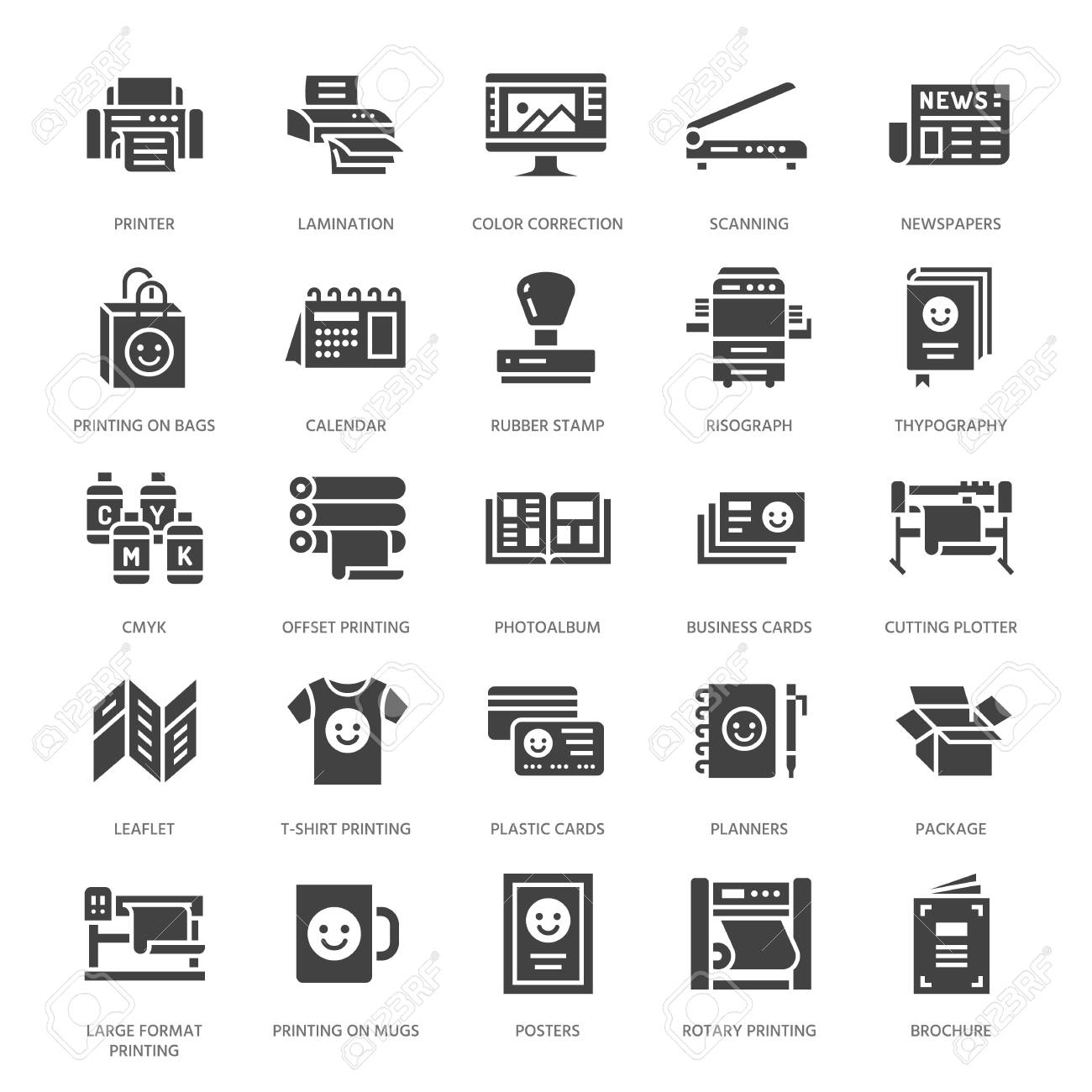 Printing House Flat Glyph Icons Print Shop Equipment Printer Royalty Free Cliparts Vectors And Stock Illustration Image