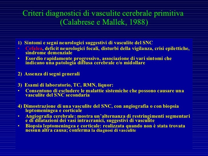 Cerebral vasculitis (sometimes the word angiitis is used instead of "vasculitis") is vasculitis (inflammation of the blood vessel wall) involving the brain and occasionally the spinal cord It affects all of the vessels very small blood vessels (capillaries), mediumsize blood vessels (arterioles and venules), or large blood vessels (arteries and veins). Se stie deja ca hipertensiunea arteriala si diabetul zaharat de tip 2 afecteaza corpul, insa un nou studiu a oferit dovezi care arata ca aceste boli pot afecta si mintea, in moduri subtile, ce pot fi sesizate inca de la varste mijlocii Toate articolele Ziarecom pe tema Creier rmn. Le forme infiammatorie con vasculite granulomatosa, a volte chiamata angioite amiloide cerebrale, sono rare, ma classiche 55L’età media di insorgenza è di 63 anni e la presentazione clinica associa un quadro di encefalopatia con instaurazione acuta o subacuta di cefalee, disturbi cognitivi o comportamentali, crisi comiziali o deficit neurologici focali 55.