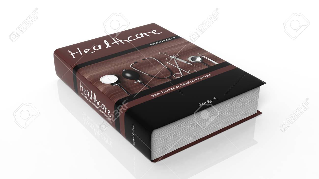 Immagini Stock Libro Rilegato In Sanita Con L Illustrazione In Copertina Isolato Su Sfondo Bianco Image