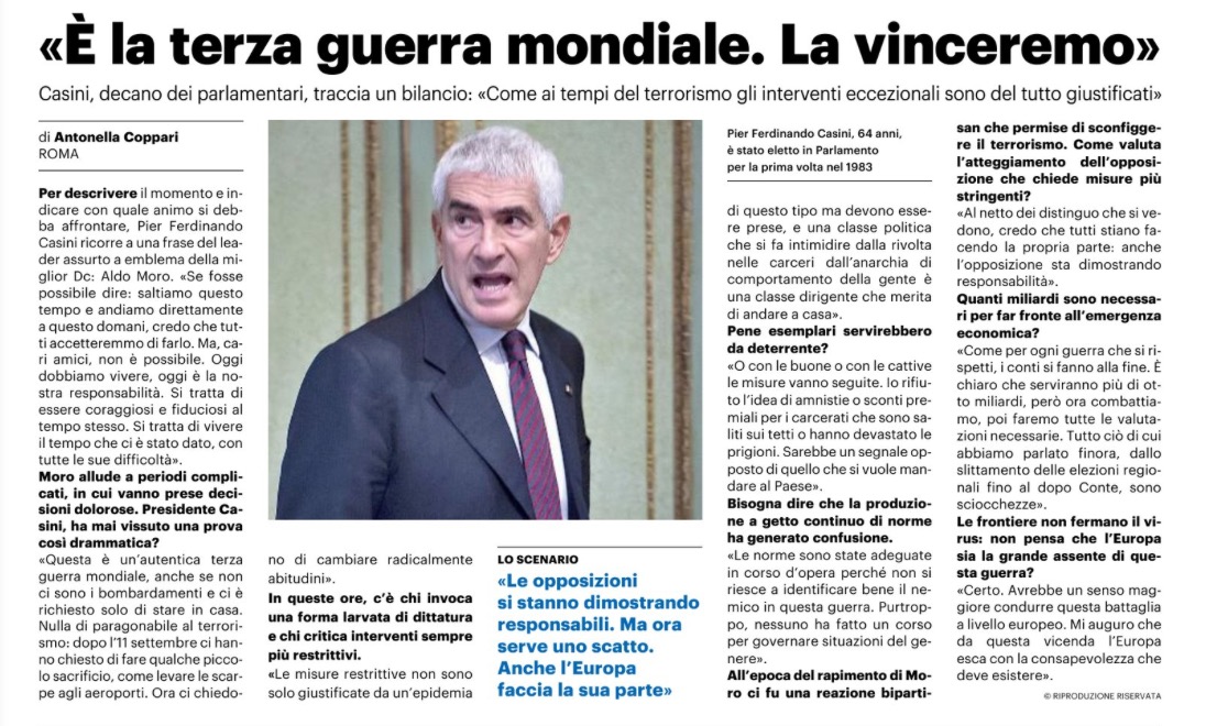 Coronavirus E La Terza Guerra Mondiale La Vinceremo Pierferdinando Casini