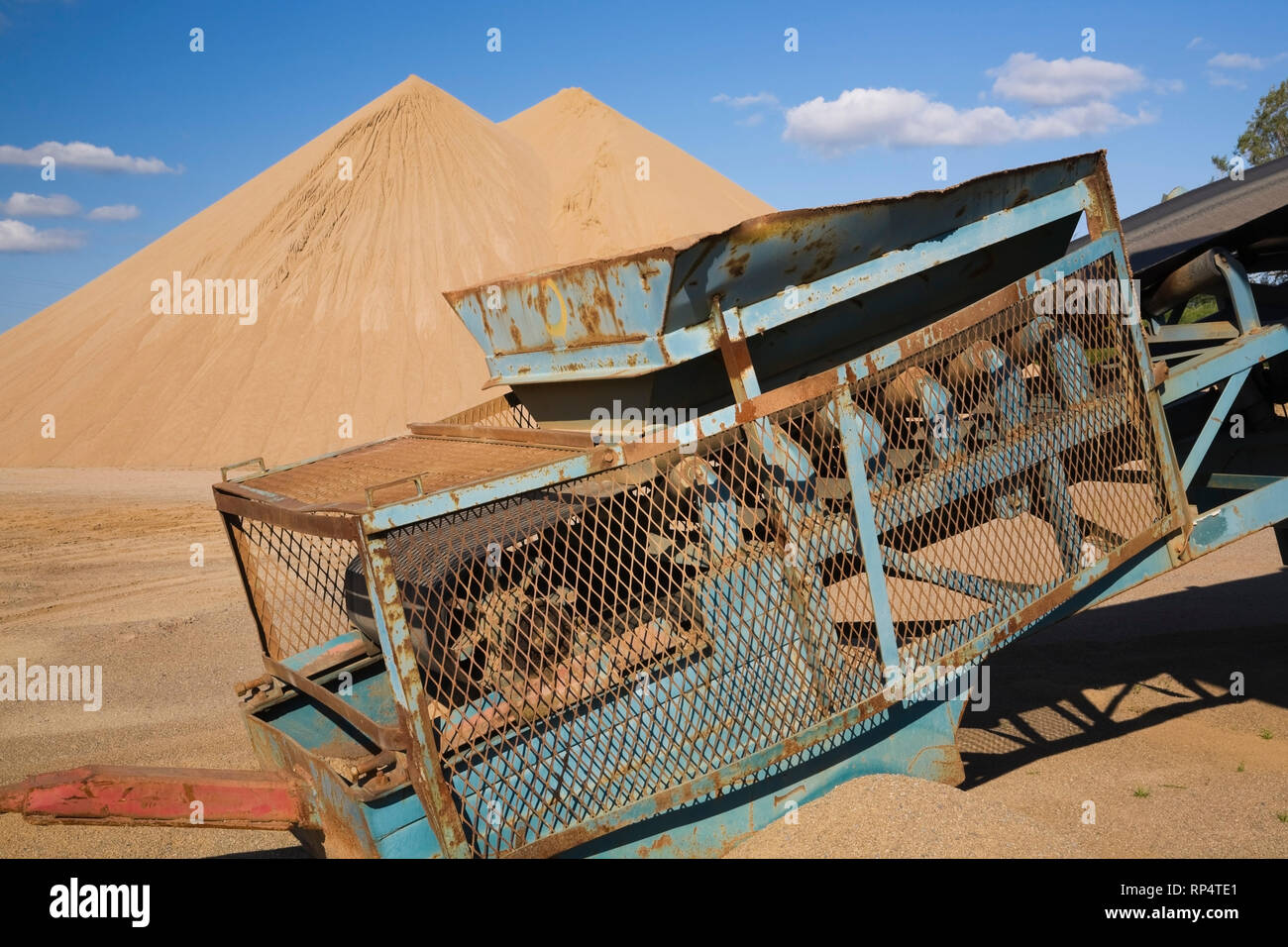 Vecchio Trasportatore Di Accumulo E Cumuli Di Sabbia In Una Buca Di Sabbia Commerciali Foto Stock Alamy
