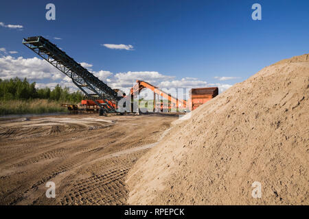 Cumulo Di Sabbia E Un Trasportatore Di Accumulo In Una Buca Di Sabbia Commerciale Quebec Canada Foto Stock Alamy