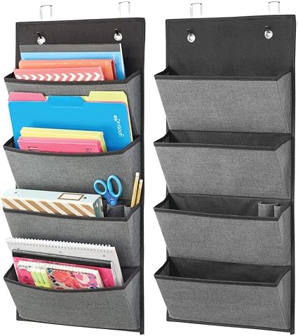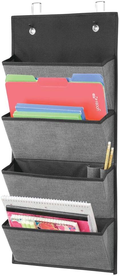 Mdesign Organizador Colgante Con Textura Panel Clasificador De Fibra Sintetica Transpirable Con Cuatro Bolsillos Estanteria De Tela Para Colgar De La Puerta O En La Pared Gris Pizarra Negro Amazon Es