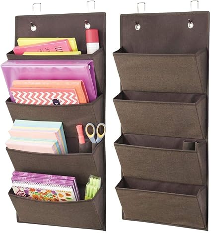Mdesign Juego De 2 Organizadores Colgantes Con Textura Panel Clasificador De Fibra Sintetica Transpirable Con Cuatro Bolsillos Estanteria De Tela Para Puerta O Pared Marron Amazon Es Hogar
