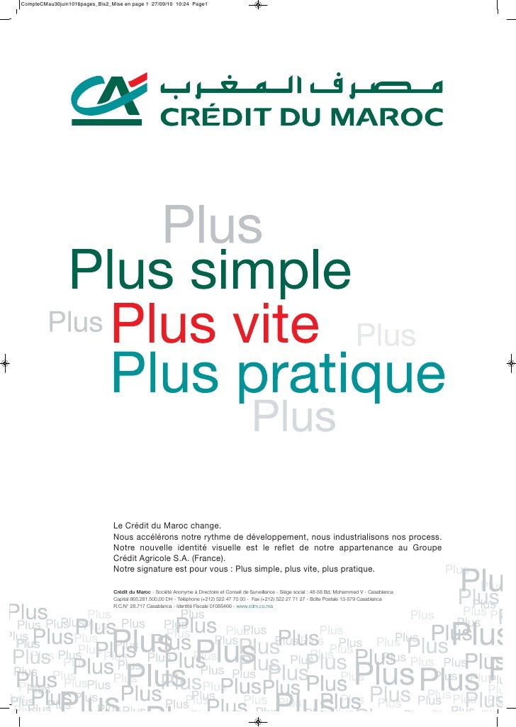 Toutes vos opérations en temps réel Gérez vos comptes rapidement et simplement avec la. Crédit du Maroc has been a major historic stakeholder in Morocco’s economy ever since 1929 With its rich and varied history, it has constantly evolved to now become a fullservice universal bank that caters for personal, business and corporate customers. Crédit du Maroc, Casablanca, Morocco 146,569 likes · 7,228 talking about this Le Crédit du Maroc, la banque qui agit avec moi, près de chez moi, pour faire vivre mes projets.
