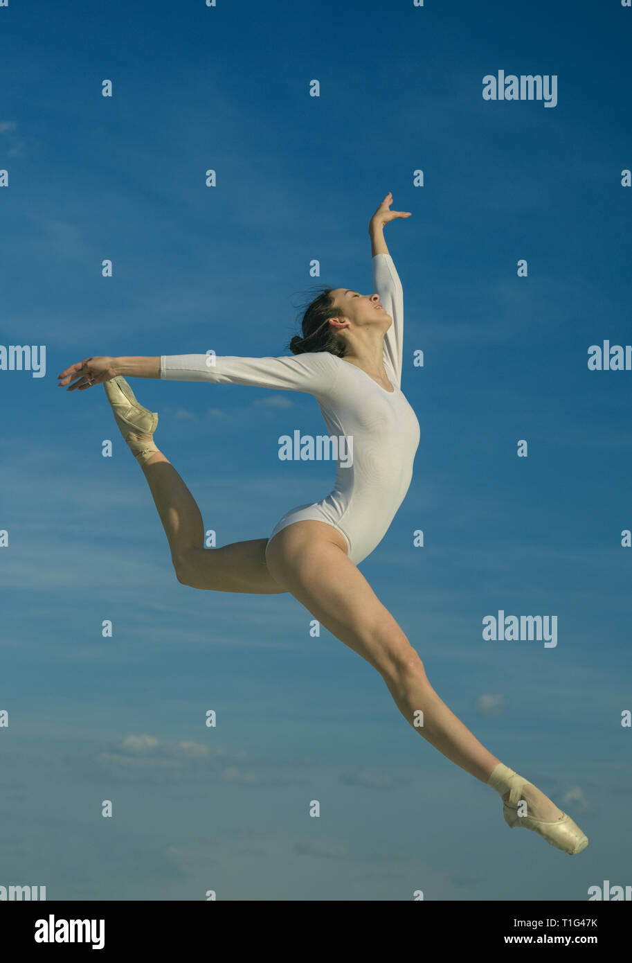 La Grazia E La Bellezza Classico Stile Di Danza Giovane Ballerina Di Saltare Sul Cielo Blu Carino Ballerina Pretty Woman In Ballo L Usura La Pratica Di Arte Di Foto Stock Alamy