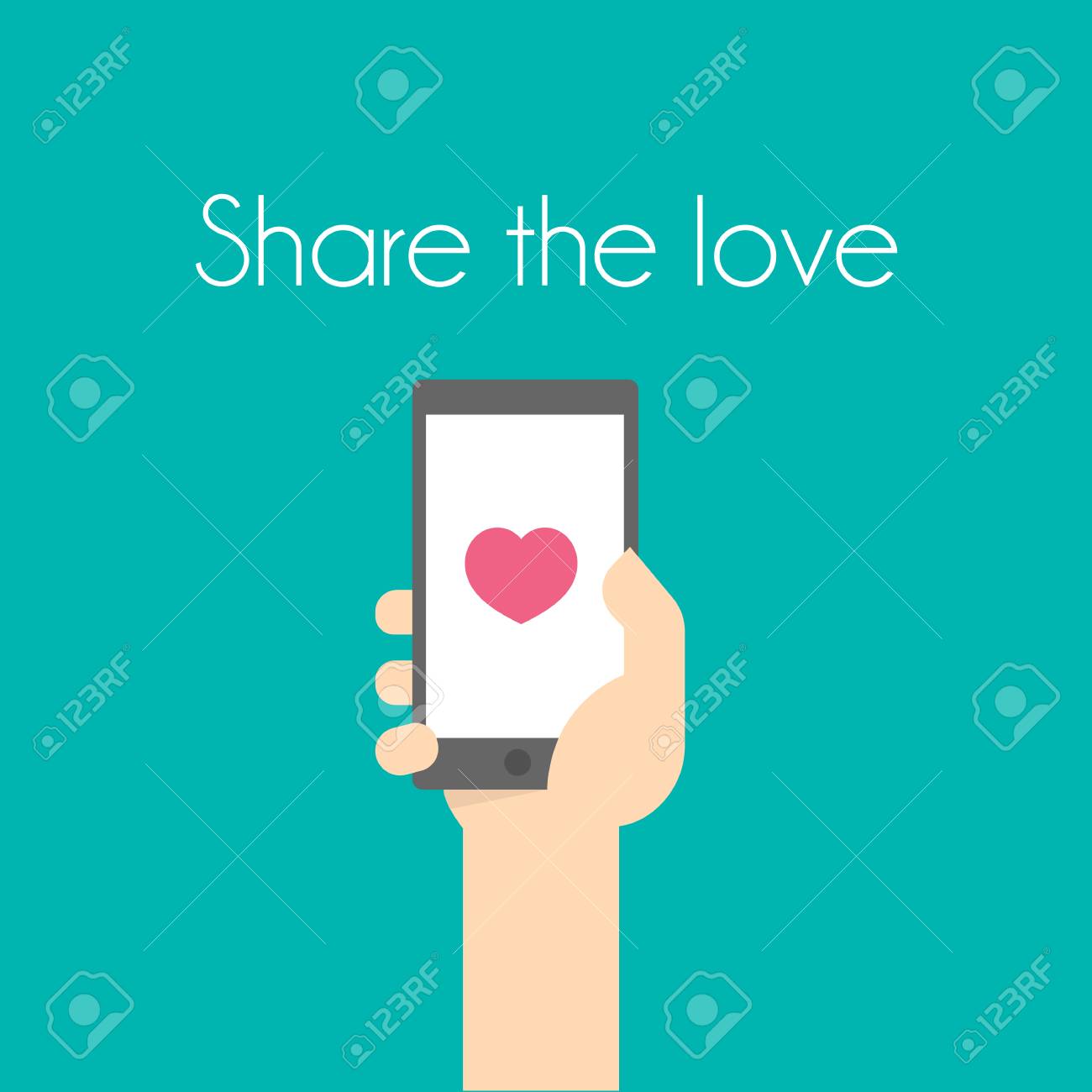 Share The Love Mobile Concept Mobile Phone On Hand And Cute Symbol Buy This Stock Vector And Explore Similar Vectors At Adobe Stock Adobe Stock