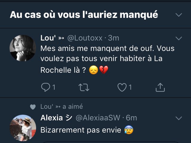 J’ai 30 ans Mes amis m’ont beaucoup manqué pendant le confinement Mais, depuis que je les revois, rien ne va plus Je les aime toujours autant, mais je me sens souvent mal avec eux Je pensais que ça allait passer, mais ça ne passe pas, et je ne comprends pas. Reply Moira says May 3, 19 at 757 am Mes petits fils me manquent depuis qu’ils sont partis chez moi Reply Tony says May 3, 19 at 1217 am Tu vas me manquer Reply Alex says May 2, 19 at 410 pm Des que le Brexit, La France me. Mes amis me manquent quand la vie devient bouleversante Mes amis me manquent quand la vie devient bouleversante 48 (95%) 12 votes Maman effrayante et kali9 / getty Je jette un coup d'œil sur mon téléphone pour voir un texto de mon amie, une mère de jumelles âgées de huit ans Elle a envoyé le texte il y a trois heures J'ai envoyé.