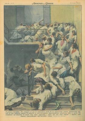 Copertina La Domenica Del Corriere Per Sfuggire Ai Gas Di Ammoniaca Usciti Da Un Apparecchio Guasto