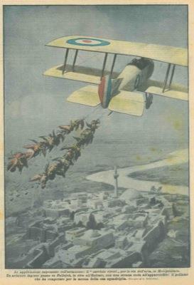 Copertina La Domenica Del Corriere Impensate Applicazioni Dell Aviazione Un Aviatore Inglese Passa Con Una Strana Coda All Apparecchio Il Pollame Che Ha Comperato Per La Mensa Della Sua Squadriglia Libro Usato