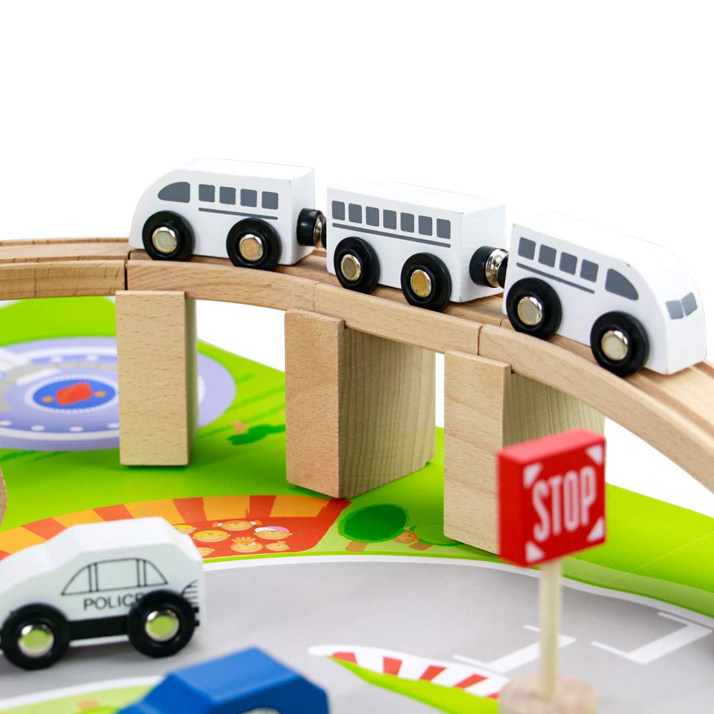 Pista Treno In Legno Giocattolo Ferrovia Rotonda Trenino Pista Con Auto Della Polizia Ambulanza Accessori 26 Pezzi Giochi Regalo Per Bambini 3 4 5 6 7 Anni Accessori Piste Da Corsa