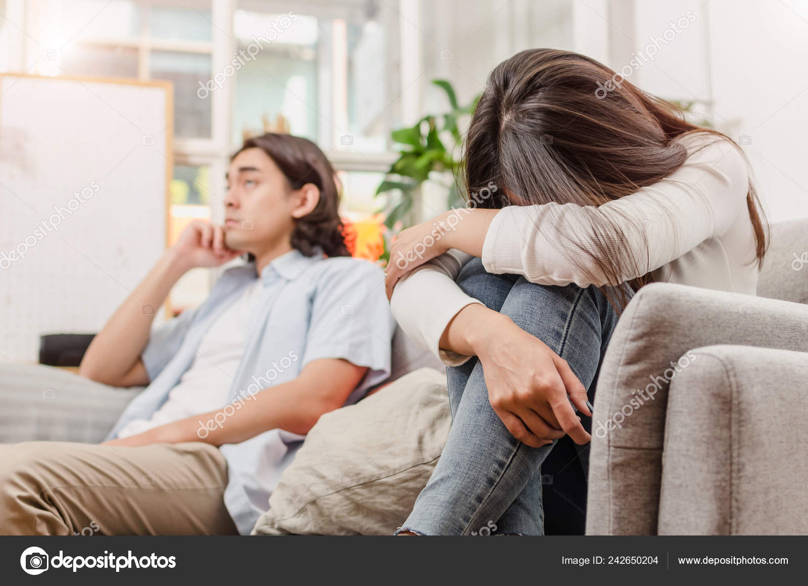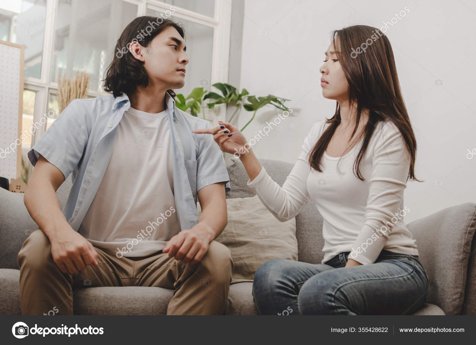 Sadness Young Asian Wife Having Quarrel Sitting Sofa Fight Husband Stock Photo C Giggsy25