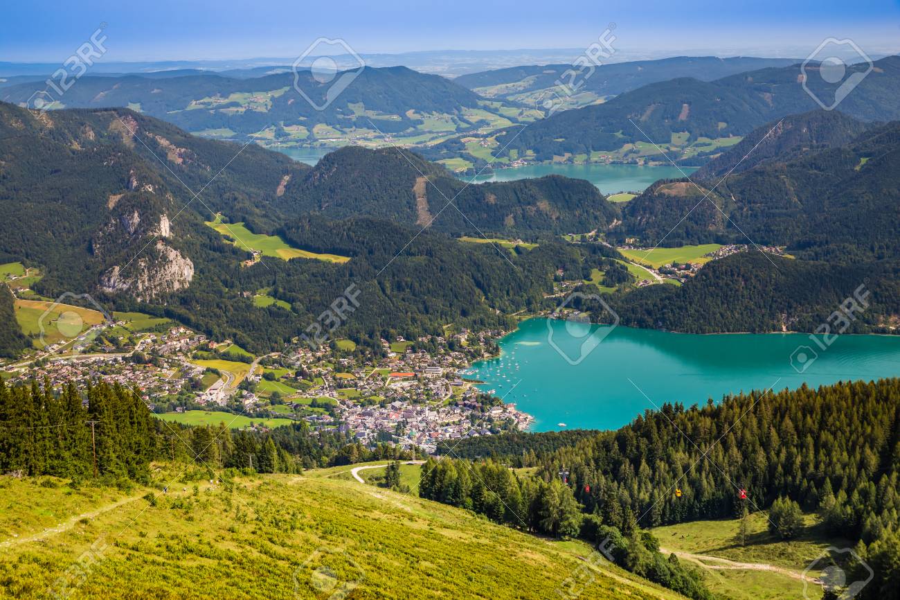 View Of Sankt Gilgen Wolfgangsee And Zwolferhorn Mountain Cable Stock Photo Picture And Royalty Free Image Image