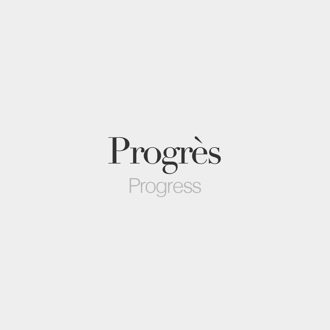 To progress is to move forward or advance towards completion An example of progress is when you continue walking down a path, getting closer to your destination An example of progress is when you are continuing to build a home. Progress, ie Advancement (subjectively or objectively) furtherance, profit see GREEK prokopto. Progress n noun Refers to person, place, thing, quality, etc uncountable (improvement) (miglioramento) progressi nmpl sostantivo plurale maschile Identifica esseri, oggetti o concetti che assumono genere maschile e numero plurale abitanti, occhiali, soldi Your progress in French is really impressive.