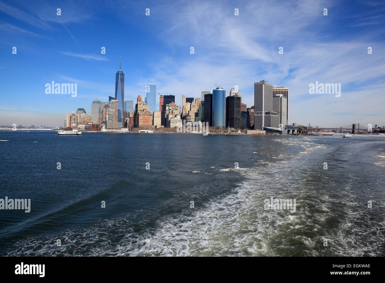 Il Porto Di New York Con La Riattivazione Da Staten Island Ferry E Dello Skyline Di Manhattan New York City Foto Stock Alamy