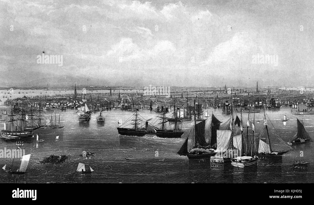 Un Attacco A Partire Da Un Dipinto Di Un Porto Di New York Molte Navi Di Dimensioni Variabili Puo Essere Visto Nel Porto Essi Comprendono Le Navi A Vela Piroscafi A Ruote