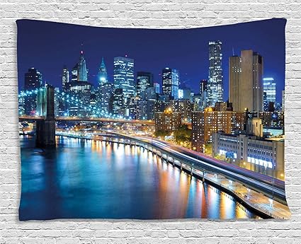 Soefipok Paesaggio Arazzo Veduta Di New York City Manhattan Bay Porto Di Notte Con Luci E Grattacieli Appeso A Muro Per Camera Da Letto Soggiorno Dormitorio Amazon It Casa E Cucina