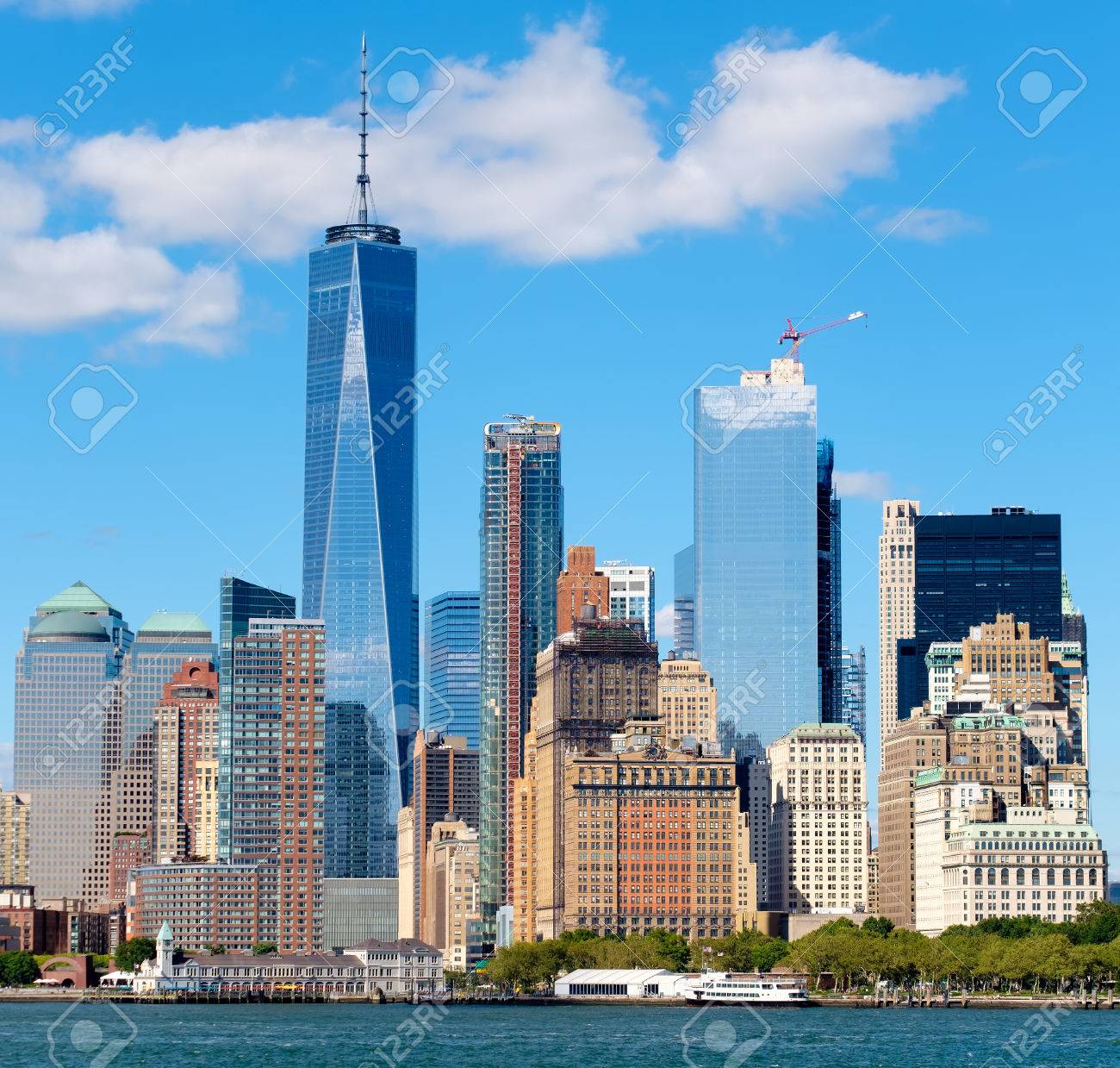 Immagini Stock Lo Skyline Di Manhattan Piu Basso Visto Dal Porto Di New York In Una Bella Giornata D Estate Image
