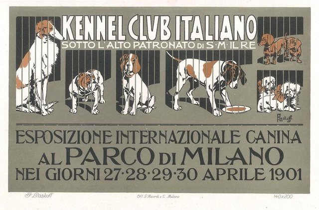 Esposizione Internazionale Canina Vintage Adv Lithograph By A Terzi 1900 Ca 1900 Ca In Vendita Su Pamono