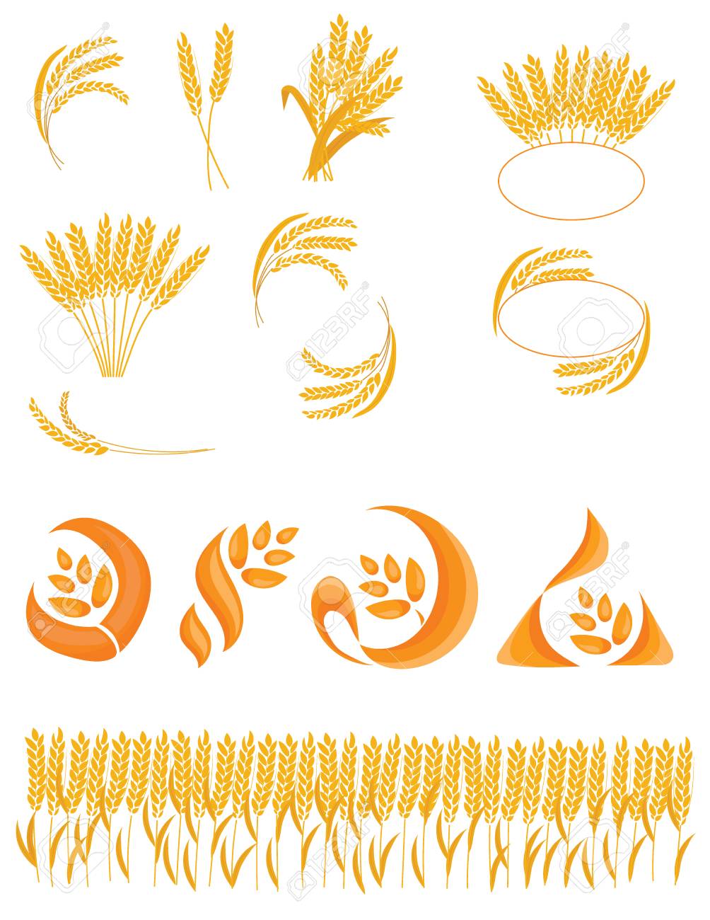 Set Of Spikelets Of Wheat Collection Of Logos With Wheat Vector Royalty Free Cliparts Vectors And Stock Illustration Image