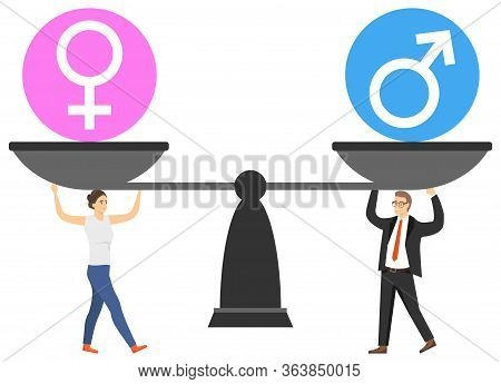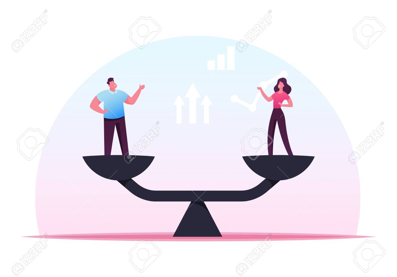 Gender Equality Concept With Woman And Man On Scales Symbol Of European Workers Professional Equality Equality Job Equal Employment Fair Balance Flat Style Vector Illustration Buy This Stock Vector And Explore