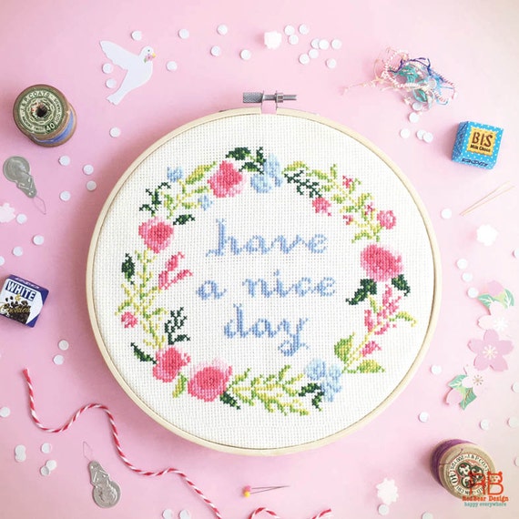 Flowers Cross Stitch Have A Nice Day Funny Cross Stitch Etsy