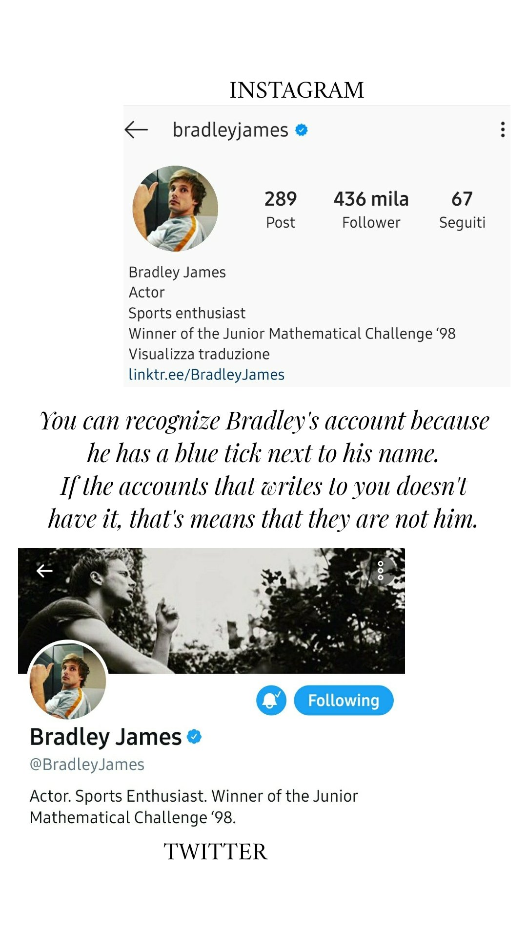 Bradley James Italy Fan Warning Do Not Trust Those Accounts That Writes You Things Like Thanks For Your Support Hello My Dearest Fan And So On Those