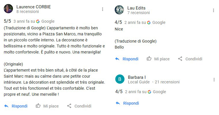 Feedbacks Reviews Casa Carlo Goldoni