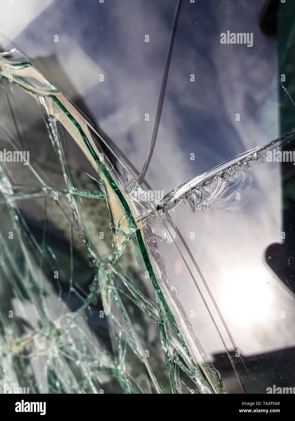 Parabrezza Rotto Di Abbandonati E Auto Distrutte Con Il Vetro Rotto Foto Stock Alamy