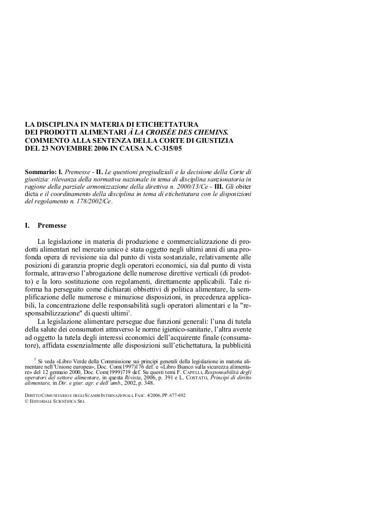 Inoltre La Commissione Definisce I Principi Generali Sui Quali Dovrebbe Vertere Una Politica Europea Degli Alimenti Tesionline