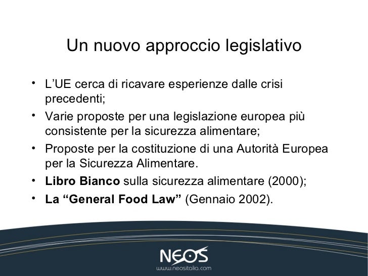 Il Libro Bianco e la legislazione alimentare dell’UE Il Libro Bianco sulla sicurezza alimentare La normativa europea in materia di sicurezza alimentare e tutela dei consumatori inizia a prendere forma, in seguito alle crisi alimentari degli anni ’90 (BSE, afta epizootica) e alla necessità della Comunità Europea nel rispondere all’emergenza. 215 IL LIBRO BIANCO SULLA SICUREZZA ALIMENTARE FUTURI ASPETTI NORMATIVI THE WHITE BOOK ON FOOD SECURITY FUTURE RULES GIULIA BIAGI (1),SANDRA NANNIPIERI (2),GIANCARLO SIGNORINI (3) RIASSUNTO Il Libro Bianco si basa sul principio che la politica della sicurezza alimentare deve. In risposta alle crisi alimentari degli anni 1990 (Bse afta epizootica) la Commissione europea ha pubblicato nel gennaio 00 un libro bianco sulla sicurezza alimentare che segna una tappa importante nella trasformazione della legislazione europea in materia Vi si annuncia l'elaborazione di un quadro giuridico che copra l'insieme della filiera.