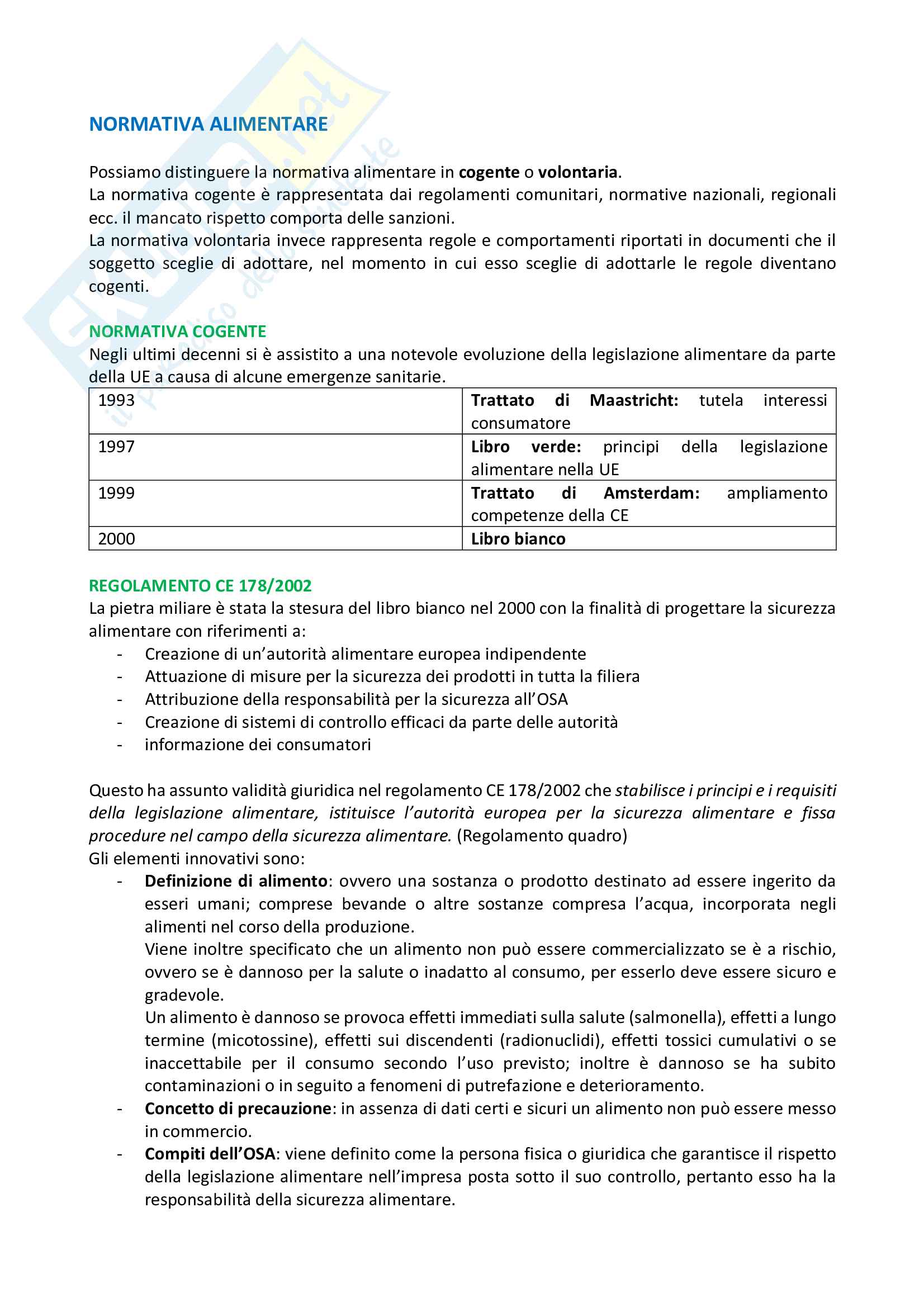Legislazione Alimentare Docsity