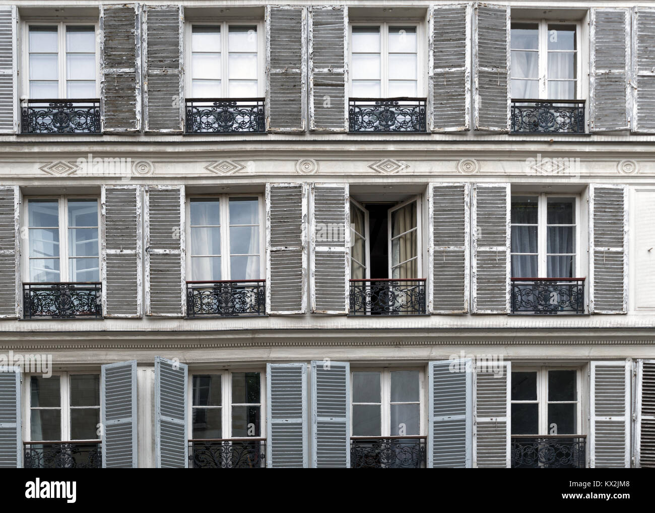 Vintage In Legno Finestre A Ghigliottina In Parigi Francia Foto Stock Alamy