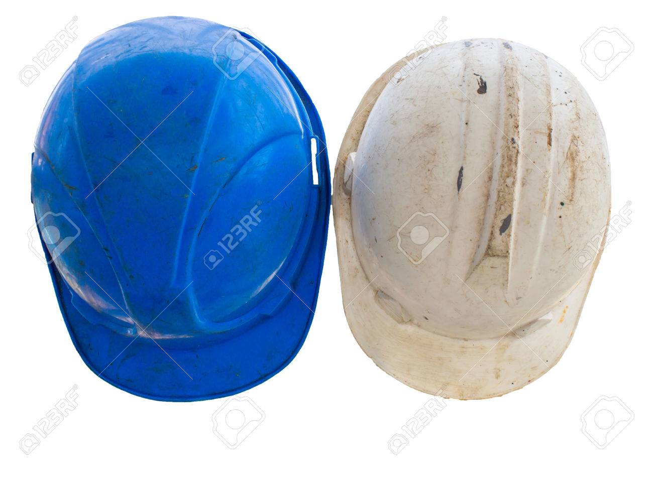Immagini Stock Vecchio Casco Di Costruzione E Di Colore Blu E Bianco Image