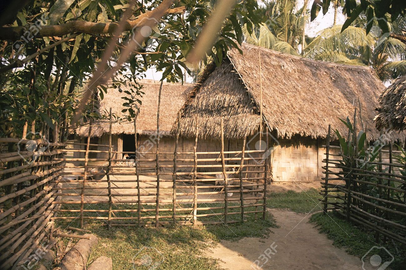 Immagini Stock Rifugi E La Recinzione Che Circonda Di Bambu In Un Tipico Villaggio Indiano Image
