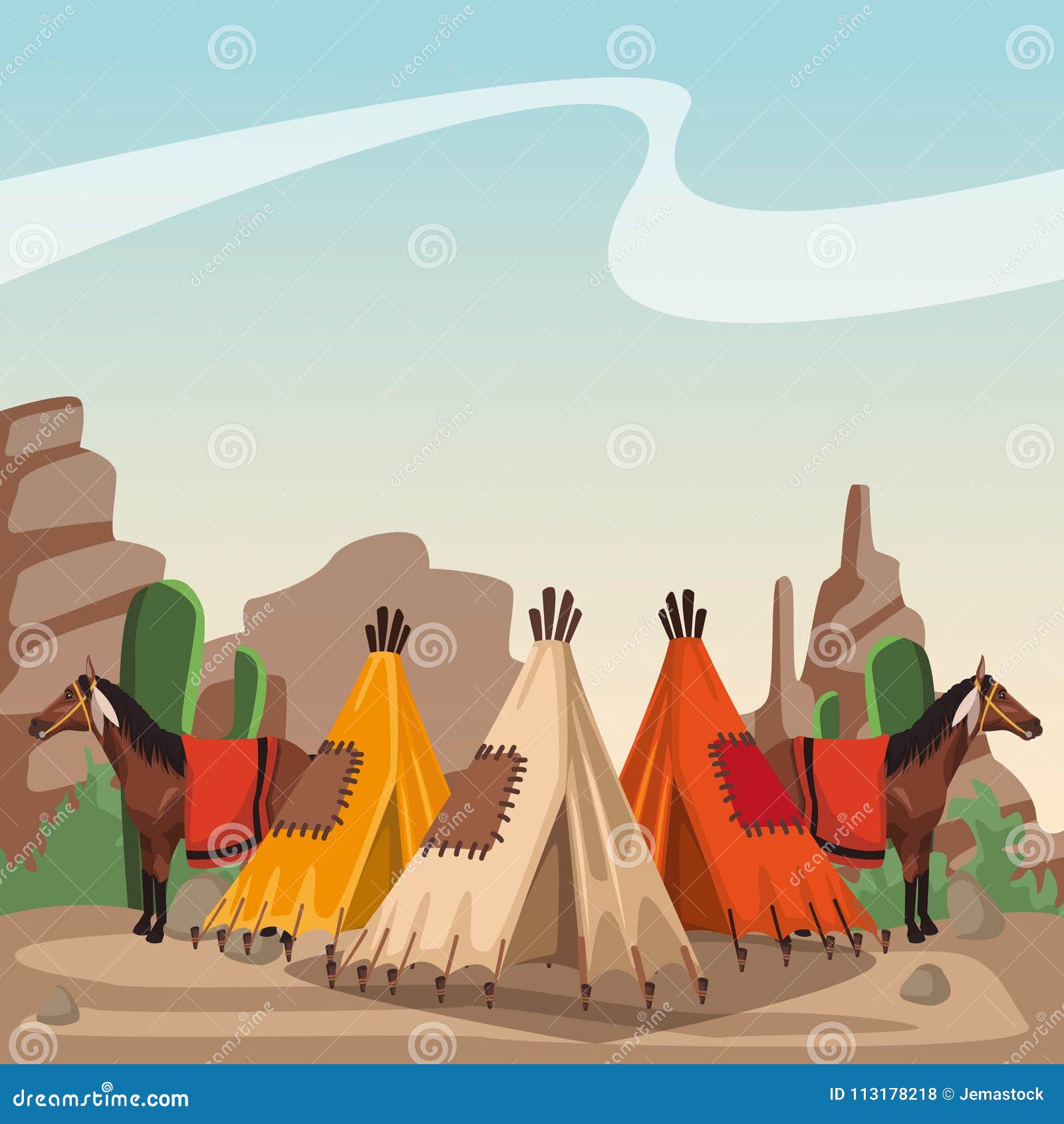 Indiano Americano Villaggio Grafico Indiano Illustrazione Americano Vettore Disegno Villaggio Cartone Animato Canstock