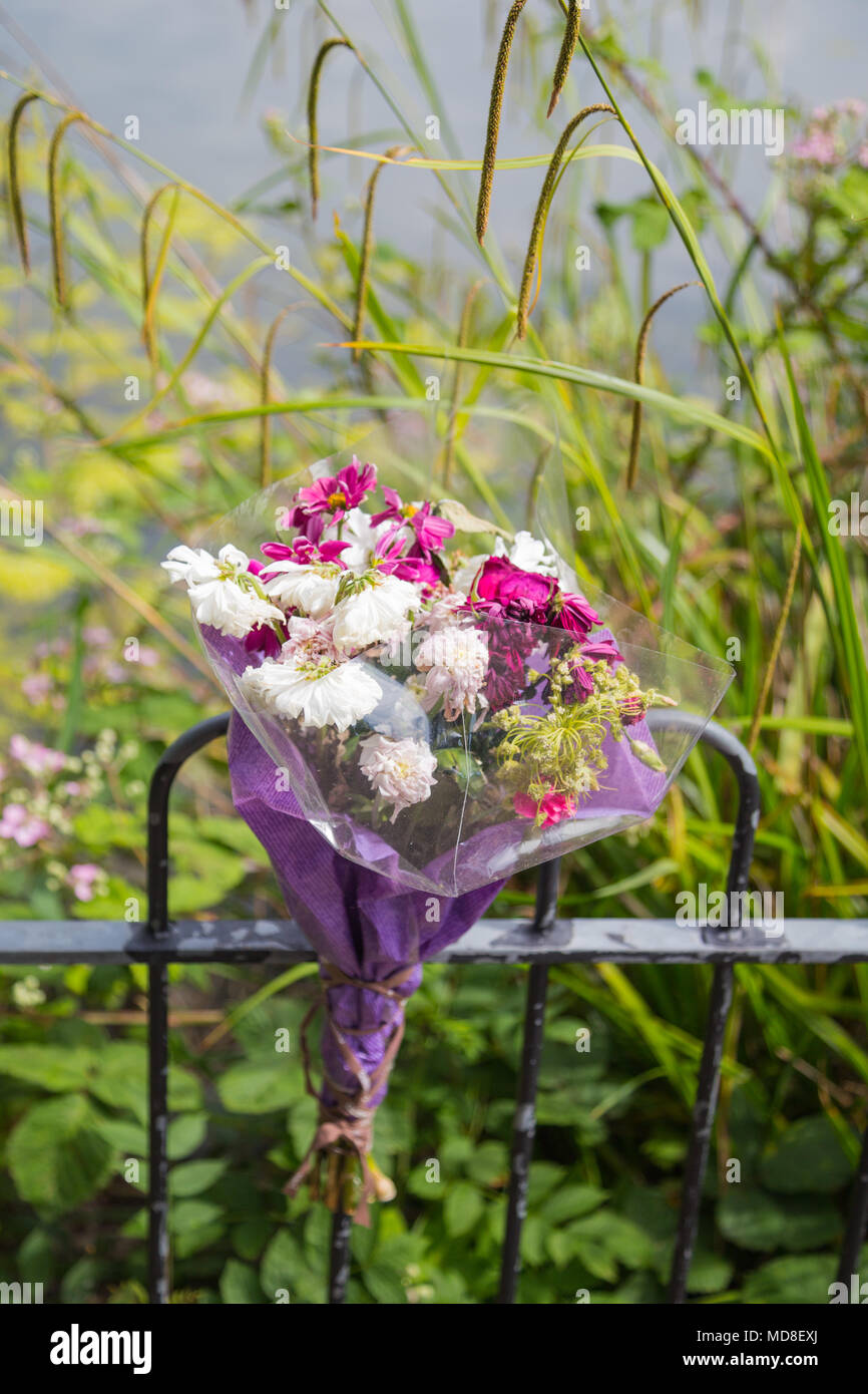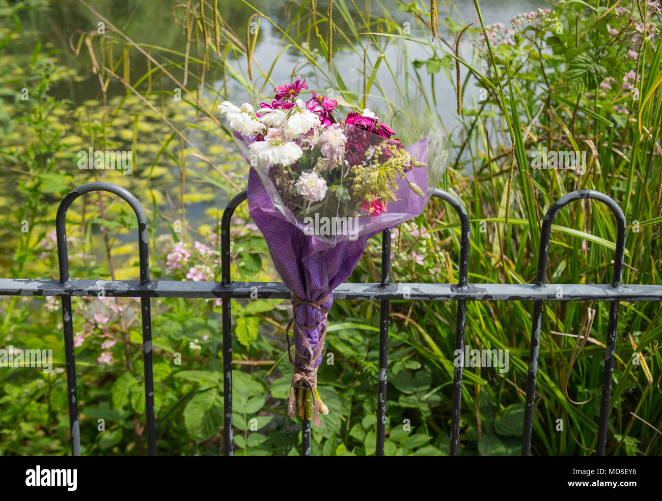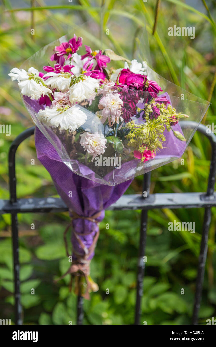 Un Leggermente Sbiadite Bouquet Di Fiori Apparentemente Lasciato In Ricordo Di Una Persona Cara In Clissold Park Stoke Newington Londra N16 Foto Stock Alamy