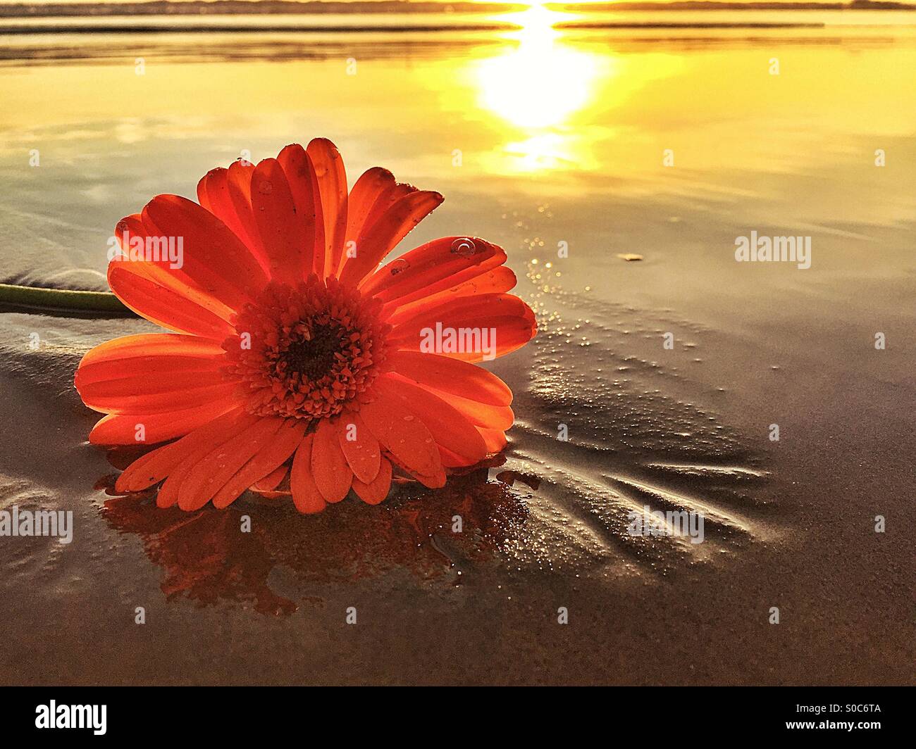 Un Fiore A Sinistra Sulla Spiaggia Al Tramonto In Ricordo Di Una Persona Cara Passa Foto Stock Alamy