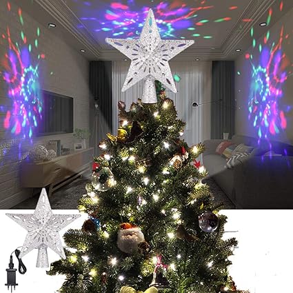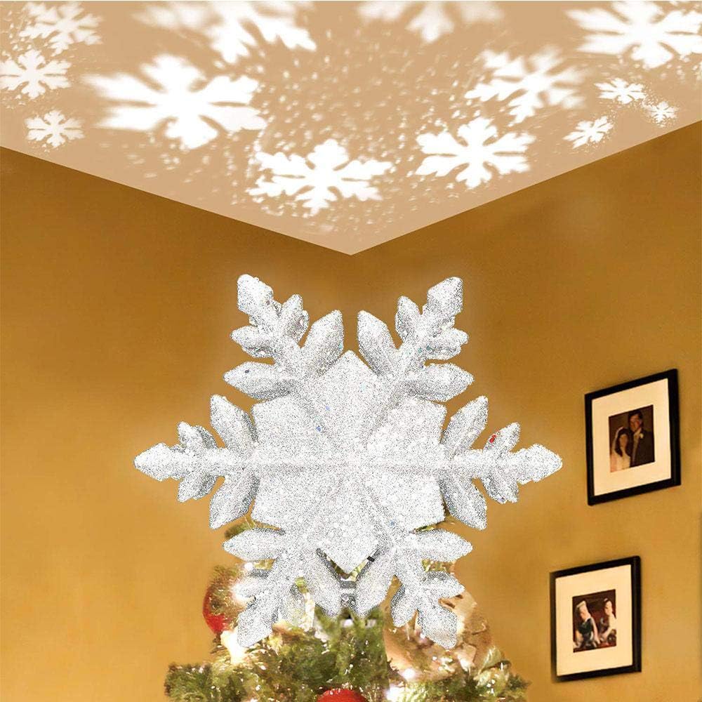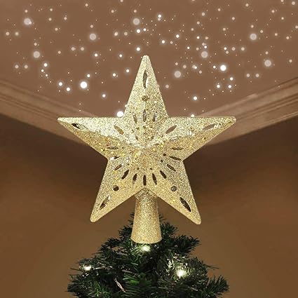 Allomn Puntale Per Albero Di Natale A Forma Di Stella Glitterata Con Proiettore Con Luci 3d